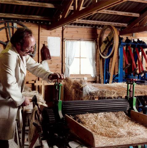 In het museum worden de traditionele handmatige vlasbewerking (1850-1960) gedemonstreerd met behulp van echte werktuigen en authentieke machines.